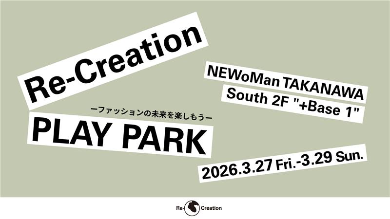 Re-Creationの認証アイテムを購入できる初のイベント「Re-Creation PLAY PARK ―ファッションの未来を、楽しもう―」を、2026年3月27日(金)から29日(日)の3日間、NEWoMan高輪 South2F “+Base1”にて開催します。